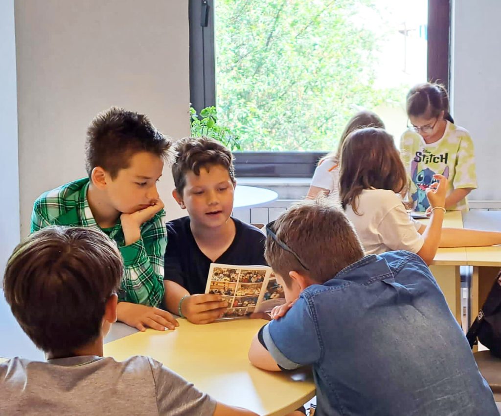 Biblioteca școlii și colțul de lectură, prezent în fiecare sală de clasă – de la grădiniță în sus – sunt spații în care elevii sunt încurajați să exploreze, să învețe și să viseze.